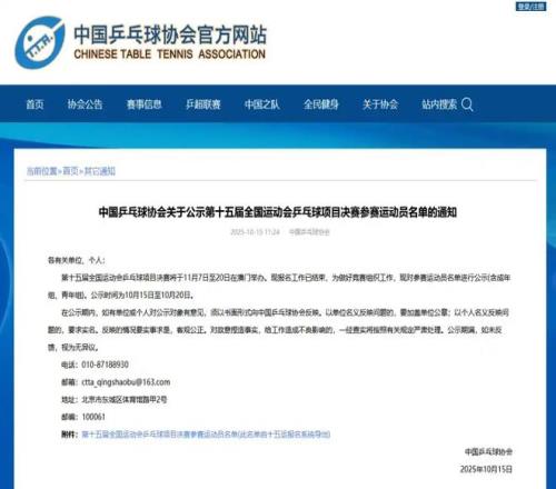 北京時(shí)間10月15日,第十五屆全國(guó)運(yùn)動(dòng)會(huì)乒乓球項(xiàng)目決賽參賽運(yùn)動(dòng)員名單公布。名單囊括了國(guó)內(nèi)所有頂尖選手,馬龍、樊振東、王楚欽、孫穎莎、陳夢(mèng)等主力隊(duì)員悉數(shù)在列。這場(chǎng)11月7日將在澳門(mén)開(kāi)賽的 “乒乓球地表最強(qiáng)賽事”,已然提前點(diǎn)燃了期待。