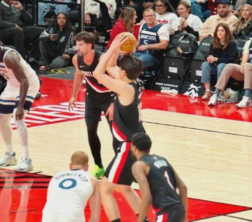 開(kāi)拓者主場(chǎng)對(duì)陣森林狼,很多人到現(xiàn)場(chǎng)觀戰(zhàn),比如楊瀚森的恩師劉維偉就從青島到了波特蘭,看弟子的NBA常規(guī)賽首秀。